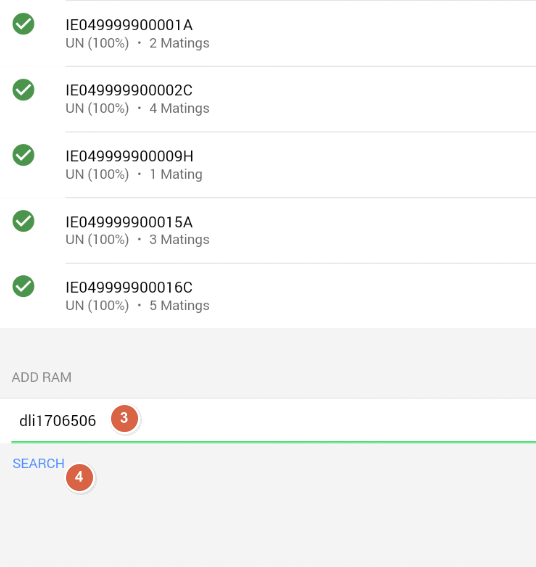 4) Click on the blue search tab. The ram that you desire will appear once the blue search bar is clicked. To record mating’s against this ram simply click on his ID. The screen below will appear.