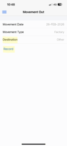 Click on the menu button and select ‘Movement Out’ from the list