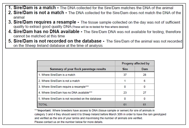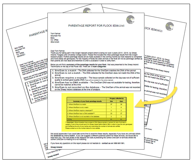 Sheep Ireland is currently developing an online system for LambPlus ram breeders to view the DNA and genotype status of sheep in their flocks. It will also be possible to order DNA sampling tags and genotypes for sheep in their flock. Until these screens are developed, parentage reports have been circulated to all OVIGEN participants.