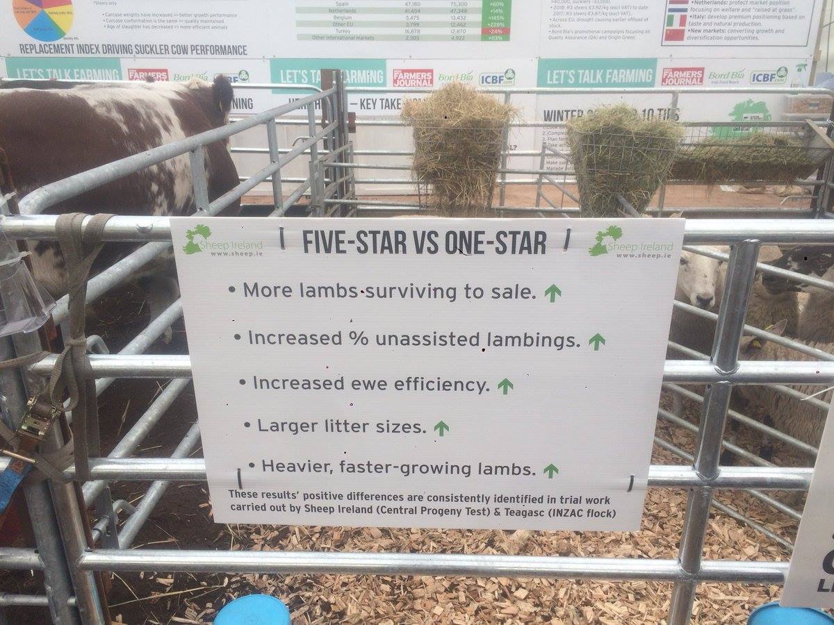 The main message Sheep Ireland have been delivering is the positive results identified in trial work carried out by Sheep Ireland (Central Progeny Test) & Teagasc (INZAC flock) from using a 5 star ram. Eamon Wall can be seen speaking at the demo in the IFJ along with ICBF and Bordbia – Irish Food Board on Tuesday at the National Ploughing Championships 2018. The quote of the day said by Mr Wall was “The Terminal index is not all about growth, lambing difficulty and lamb survivability are important elements as well. If lambs are not surviving at birth that is going to hit the bottom line”