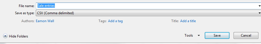 Saving your excel file is a critical step. It is essential that the file is saved as a CSV file. To do this simply go to ‘File’ at the top left hand corner of your computer screen while in Excel. Here you will see an option ‘Save As’. Click on ‘Save As’ and you will have an option to ‘Save file as’. Click here for a list of different file types – you should see CSV (Comma delimited) as one of the file type options (see below). Ensure that you save your file to somewhere easily accessible on your computer.