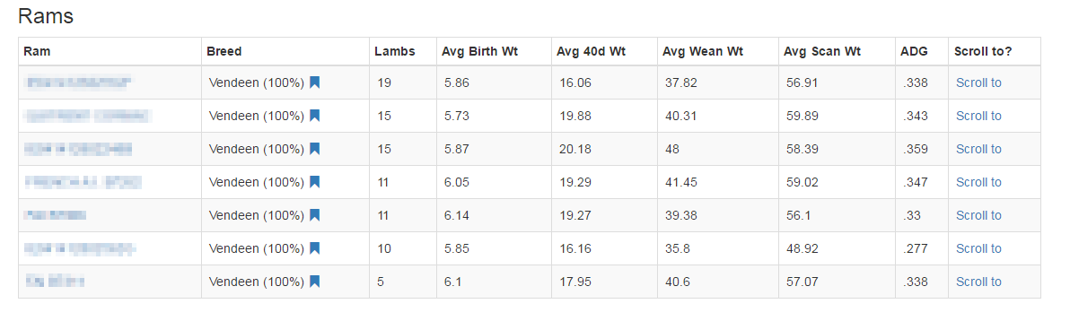 Some breeders will have all their weights recorded and will soon be looking into rams for the next breeding season. The ram report is a handy tool for farmers to select which of their own stock rams they would like to use again. It shows the average daily gain and the differences between the lambs at the different weighing stages. See an example of a ram report below.