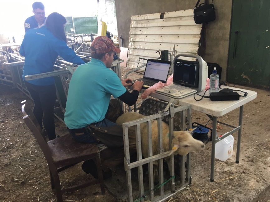 Today Sheep Ireland visited Pallaskenry Agricultural College to Ultrasound scan progeny from CPT rams which were used on the farm last Autumn. Finding additional sources of commercial farm data is hugely beneficial to the €uro-Star evaluations and we are building the volume of commercial data entering our database on an annual basis. We are continually trialling new ways of collecting on farm data and today in Pallaskenry we tested the use of a tablet device to collect a number of phenotypes from each lamb. The use of a tablet on farm has the potential to make data collection for ram breeders and commercial sheep farmers much easier.
