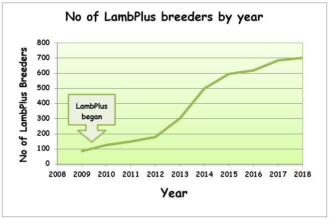 We have now over 700 breeders involved in our LambPlus Programme. Below is a graph of our participation to date, to see a list of these breeders and a breakdown by breed please see here.