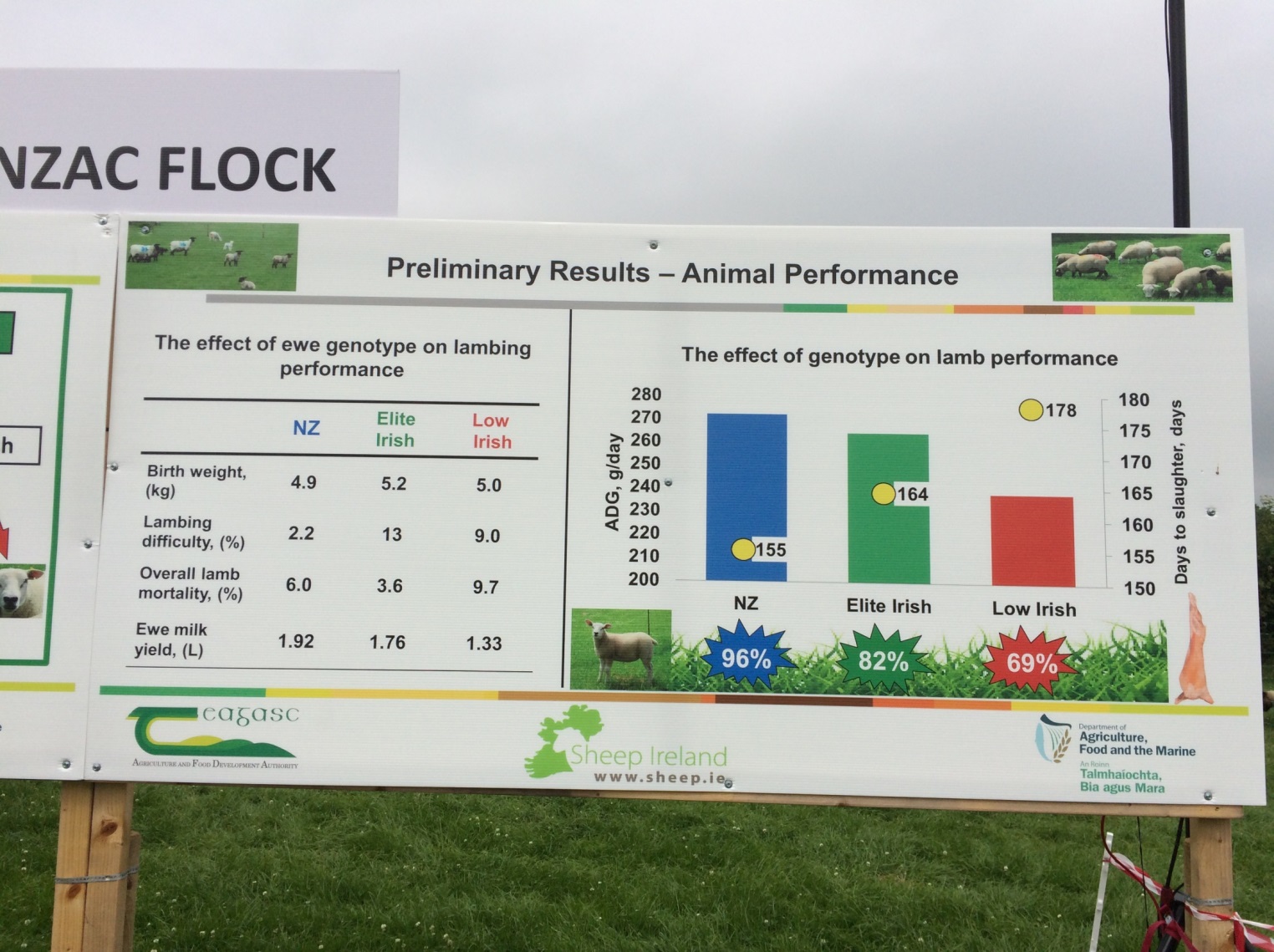 - From a Sheep Ireland point of view, sheep genetic improvement was very much to the fore. Early results from the INZAC research flock being led by Fiona McGovern, is showing very promising results. Although very early days, the high index Irish animals are performing quite well. This group is outperforming the low Index quite significant in some of the keys traits that affect farm profitability. This illustrates that the €uroStar indexes can identify more profitable sheep and this message was delivered clearly to those that made the trip to Athenry. The NZ sheep are performing very well also and are currently slightly ahead of the high index Irish group.